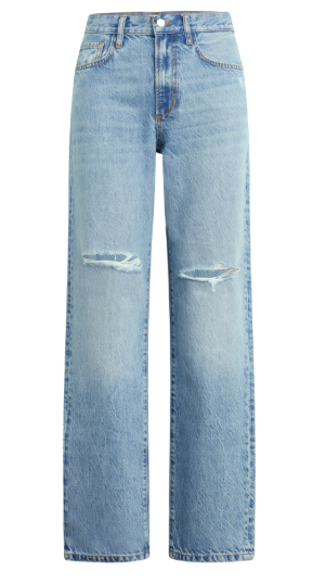 Borrowed from the boys. The Tommy is the ultimate relaxed boyfriend jean–easy at the waist and low slung at the hips for a long and loose style. Cut from rigid denim, the medium-dark blue wash of Boston has a vintage vibe with destruction at the knees & thighs and distressing along the seams.